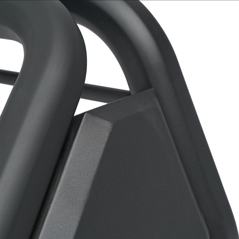 The surface is powder-coated black for excellent wear and corrosion resistance.